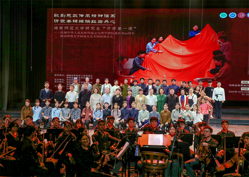 海南师范大学青年交响乐团、研究生艺术团、音乐学院师生联袂呈现的红色歌剧节选表演将活动推向高潮。在《沂蒙山》选段中,演员们以深情婉转的唱腔,再现了军民互助、共克时艰的感人场景,让来自临沂的王同学热泪盈眶:“家乡的英雄故事以歌剧形式呈现,让我更深刻领会了先辈们艰苦奋斗的精神。我将以先辈为榜样,把学术追求与国家需要紧密结合,用实际行动践行‘请党放心,强国有我’的青春誓言。