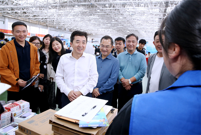 海南师范大学校长聂清斌、党委副书记符刘才、副校长徐基良,省人力资源开发局、招生就业处等单位负责人、各二级学院负责人来到双选会现场,与企业代表及招聘工作人员亲切交谈,了解参会企业的类别类型、各单位的招聘情况以及学生的求职就业情况。聂清斌强调,要以AI赋能毕业生就业,严格落实参会企业背景核查,精准对接海南省各市县用人需求,广泛邀约优质企业入驻,为毕业生拓宽就业渠道、增加岗位选择。