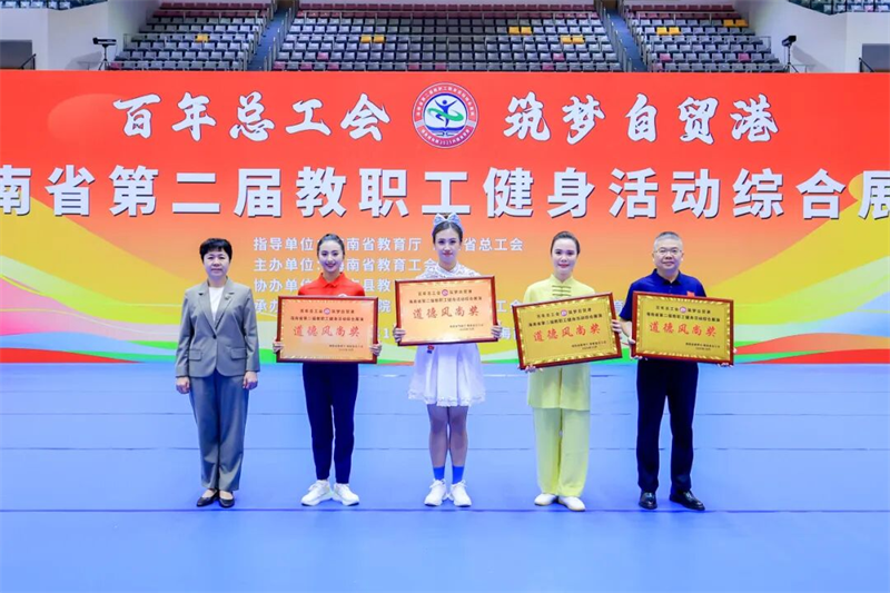 10月24日-26日,海南省第二届教职工健身活动综合展演在三亚学院书艺馆综合体育馆成功举行。三亚学院教职工太极代表队凭借行云流水、刚柔并济的精彩演绎,荣获高校组太极项目一等奖和道德风尚奖作为承办方,还获颁“特殊贡献奖”,本次赛事充分展现了三亚学院教职工专业进取精神与勠力同心的精神风貌,为学校赢得了荣誉。