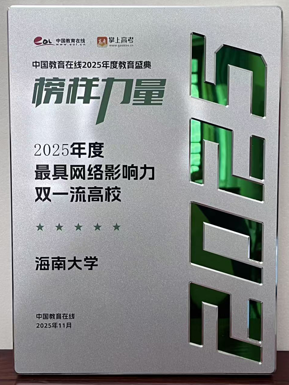 海南大学荣获“2025年度最具网络影响力双一流高校”