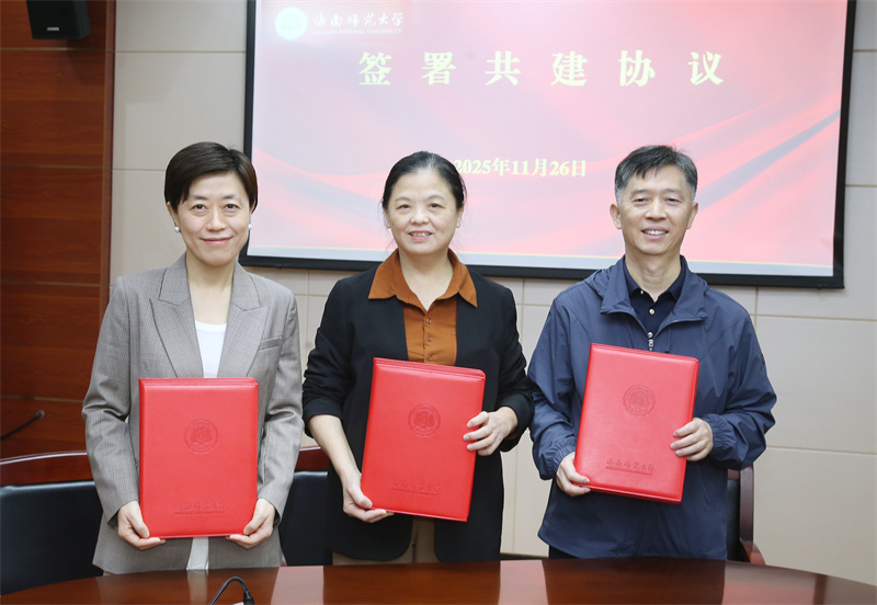 签约仪式上,彭玉斌宣读了中国作家协会关于在海南师范大学设立中国作家协会新时代海洋文学创作与研究中心的批复文件。王姹、古莉和海南师范大学文学院王学振教授分别代表海南省作家协会、南方出版社及校方签署三方共建协议。