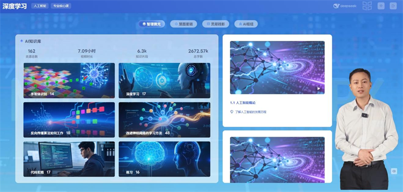 针对上述痛点,课程团队充分发挥AI技术优势,对《深度学习》课程进行了全面改革与创新,通过一系列前沿技术的应用,让深度学习学习变得更加智能、高效、有趣。