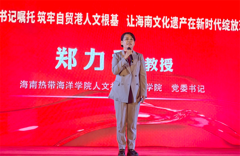 郑力乔以《深学笃行习近平总书记嘱托 筑牢自贸港人文根基 让海南文化遗产在新时代绽放璀璨光芒》为题,进行了生动深入的阐述。她指出,海南自贸港建设所带来的全新开放格局,不仅为区域经济发展注入强劲动力,也为文化遗产的保护、传承与创新提供了前所未有的广阔平台。党的二十届四中全会关于“推进文化自信自强,建设社会主义文化强国”的战略部署以及习近平总书记对海南工作的重要指示,特别是关于保护好、运用好、传承好海南各类文化的明确要求,为相关工作指明了前进方向,提供了根本遵循。