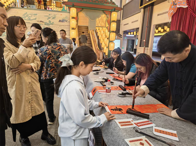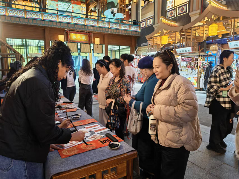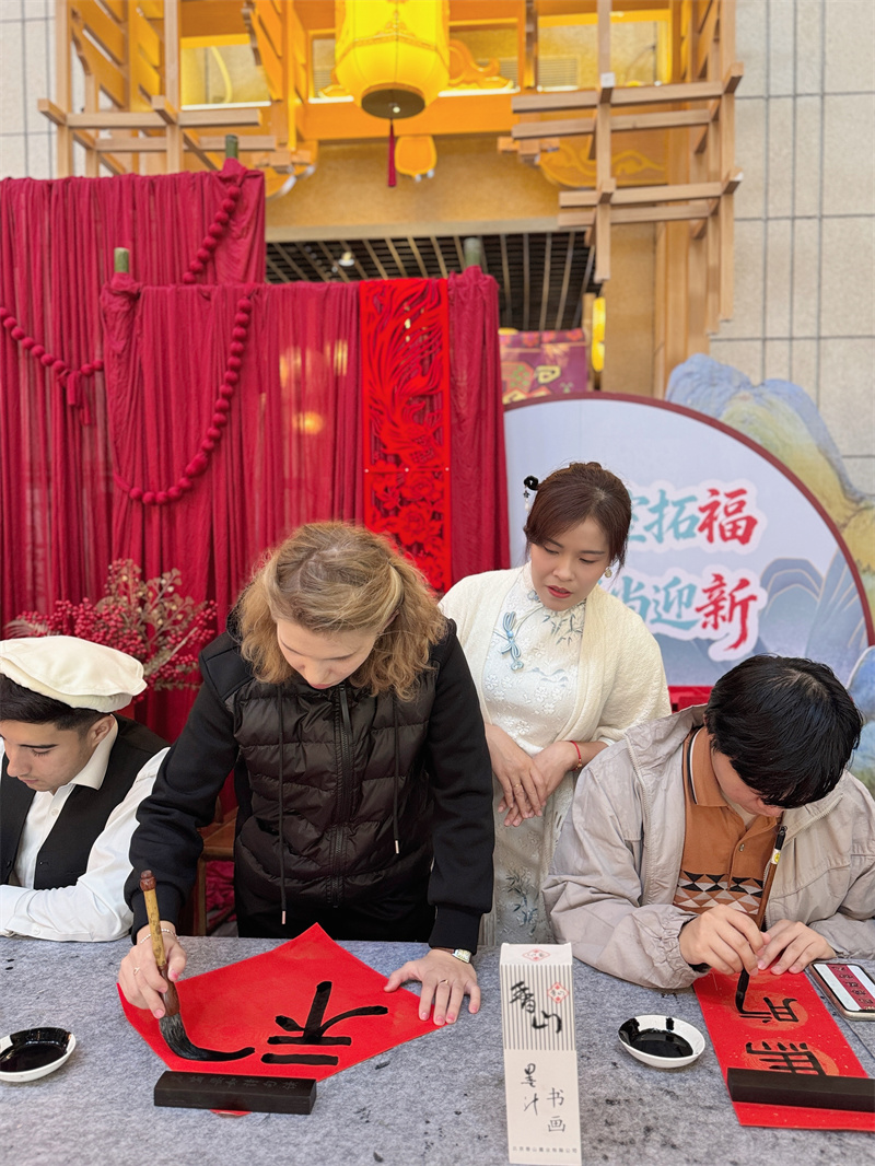 俄罗斯籍学生达俐雅表示:“在书法课上学习的是技法,今天亲手书写并赠送春联,让我真正体会到春联承载的美好祝愿。”