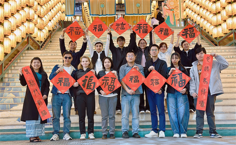 近日,海南师范大学国际教育学院来自俄罗斯、哈萨克斯坦、摩洛哥、阿富汗、泰国、菲律宾、缅甸等国的10名留学生,前往海口东坡老码头开展笔墨迎春文化实践活动。留学生们铺纸挥毫,为市民游客送上新春祝福,在翰墨清香中体验中国传统文化。