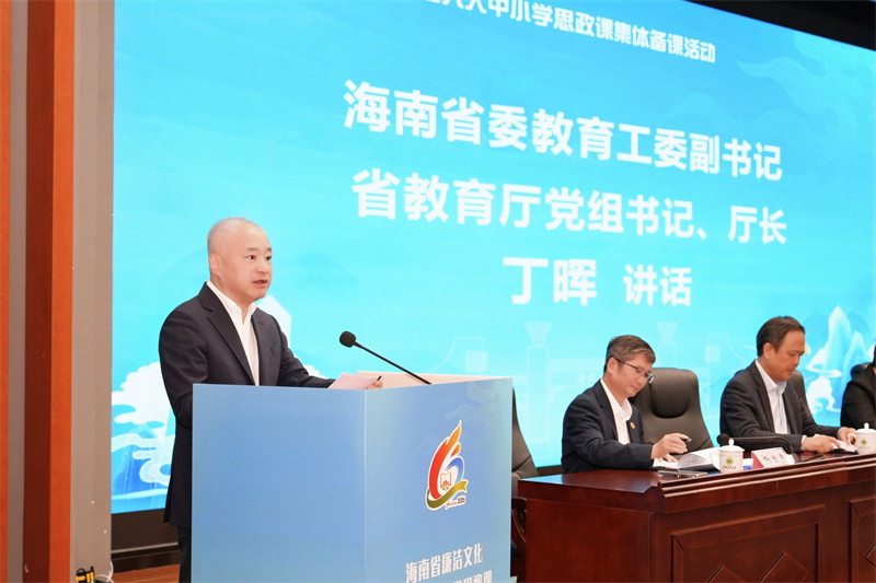丁晖指出,将廉洁文化融入大中小学思政课,是培养社会主义建设者和接班人的必然要求,也是护航海南自贸港高质量发展、擦亮清廉自贸港鲜明底色的重要举措。他强调,广大教师要讲好习近平总书记关于党风廉政建设、廉洁文化建设的重要论述,充分运用海瑞、琼崖革命文化等本土优秀文化资源;要筑牢思政课主阵地,分学段做好廉洁教育的融入工作,以思政课牵引各门课程协同,实现全员全过程全方位育人;要廉洁从教、为人师表,以廉洁之师培育廉洁之人。各地各校要抓紧抓实廉洁文化教育工作,着力“设计一批优质课程、创作一批生动故事、培养一批骨干老师、打造一批有效载体、总结一批典型经验”,让崇德尚廉在校园蔚然成风。