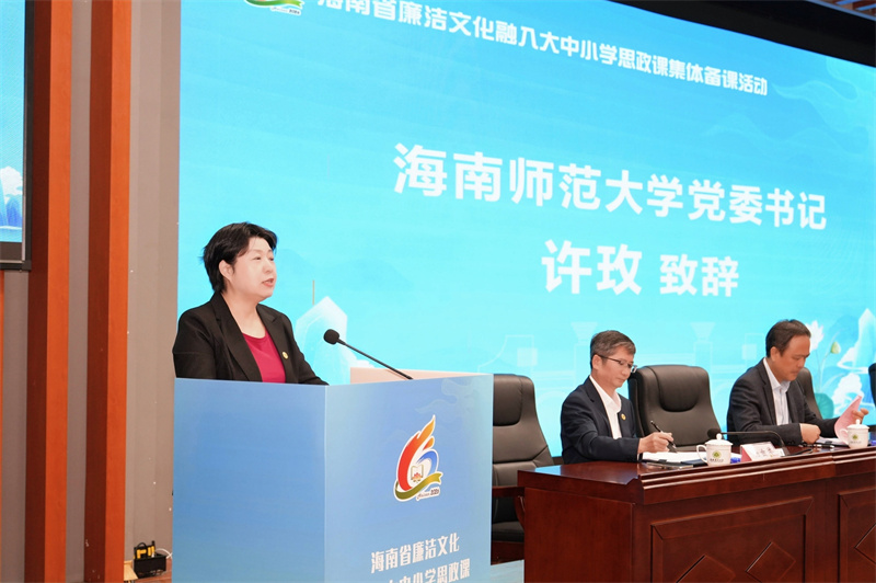 许玫在致辞中表示,将充分发挥全国“大中小学思政课一体化共同体”建设牵头单位、全国重点马克思主义学院作用,推动廉洁文化有机融入大中小学思政课教学,努力打造廉洁教育“金课”,为清廉自贸港建设贡献海师力量。