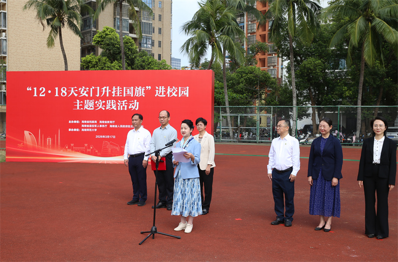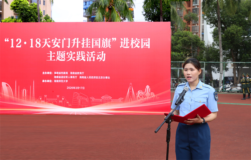 “这面国旗不仅是荣誉的展示,更是精神的传递。作为新时代学子,我们要以青春为笔、以奋斗为墨,在推动海南自贸港和社会主义现代化强国建设的画卷上,书写属于我们这一代人的精彩篇章。”3月17日,全省首场“12·18天安门升挂国旗”进校园主题实践活动在海南师范大学举行,学生代表郑思瑜的发言铿锵有力、饱含深情。
