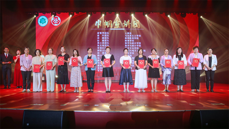 晚会表彰了“巾帼能手”“巾帼新星”和“巾帼先进集体”。2025年度,顾小娟、李现红、李娅、徐冬、杨红、郭敏、刘沛珮、叶成徽、符小惠、许越等十名女教师获得“巾帼能手”荣誉;郑思瑜、尹佳钰、汪洋旭、刘林果、赵欣雨、龙可、王心诗慧、贾芸、马斓、张斯佳等十名女学生获得“巾帼新星”荣誉;海南师范大学人事处、国内合作与发展处获得“巾帼先进集体”荣誉。出席晚会的领导为各荣誉获得者和集体颁奖,并为16位老师及其团队颁发“巾帼宣讲团”聘书。