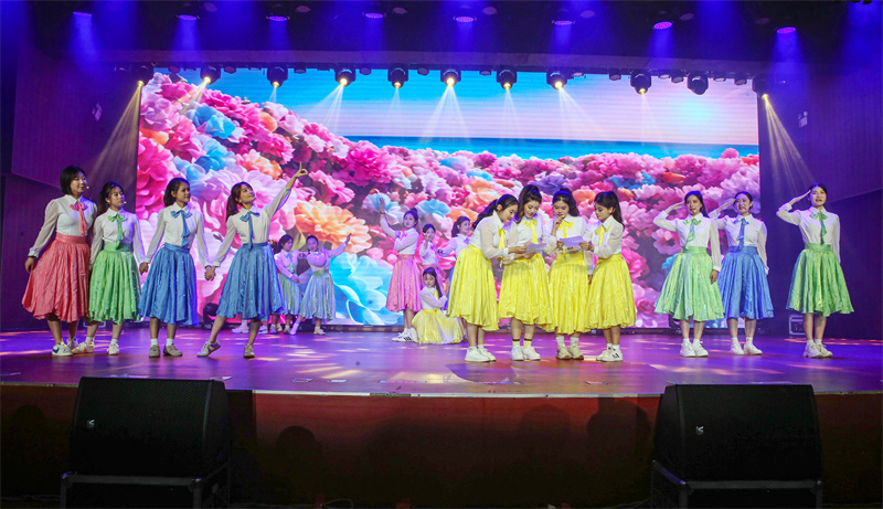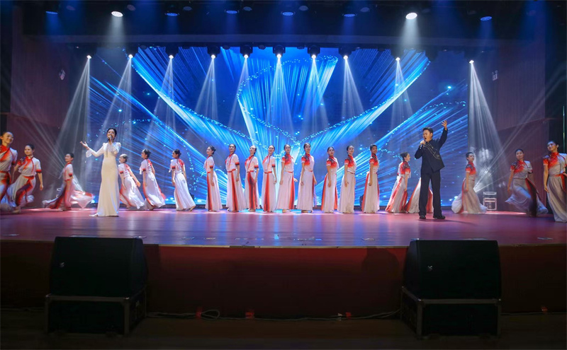 晚会以歌曲表演《光》开场,清亮昂扬的旋律传递温暖力量,点亮巾帼风采。各类节目轮番上演、精彩纷呈,《师韵芳华——海南师范大学女子旗袍秀》优雅大方,在旗袍摇曳间尽显巾帼师者温婉与东方气韵;诗朗诵《“她们”的图画》用诗意语言勾勒奋斗身影,诉说巾帼担当;师生共唱的《花开中国》,以欢快旋律礼赞时代,生动展现了新时代女性自信昂扬、向上向善的精神风貌。整场晚会温馨热烈、催人奋进,在昂扬旋律中圆满落幕。