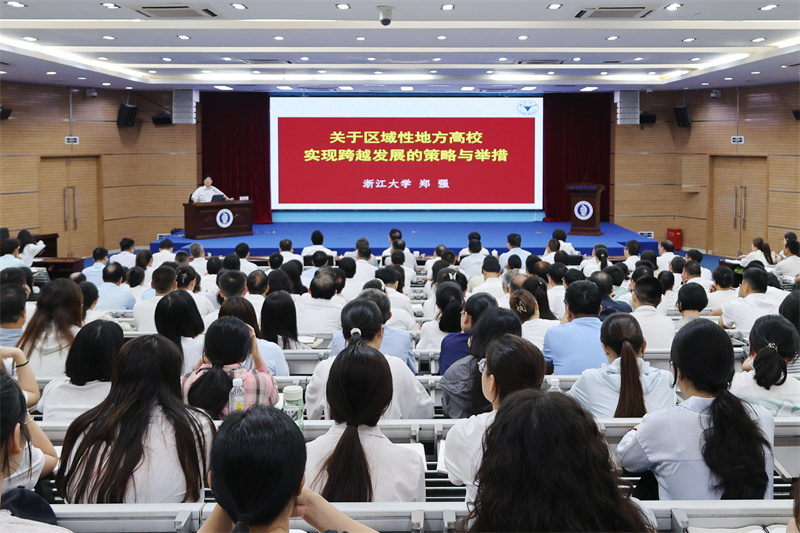 郑强凭借深厚学术造诣和独到教育见解,从“讲全局、讲定位、讲发展”三个维度,依托三十八个核心观点,系统梳理并深度阐释了新时代地方高校高质量发展的核心逻辑与实践路径。郑强以“大国八力”为切入点,深刻诠释了大学建设的极端重要性。针对地方高校发展面临的现实挑战,他精准剖析“六个短板”突出问题,并为地方高校实现跨越发展提出了清晰的路径指引。他结合丰富案例和翔实数据指出,地方高校实现跨越发展的首选举措与最优途径是结构重组与调整,实现健康发展的必选举措与必经之路是深化改革、注重内涵。