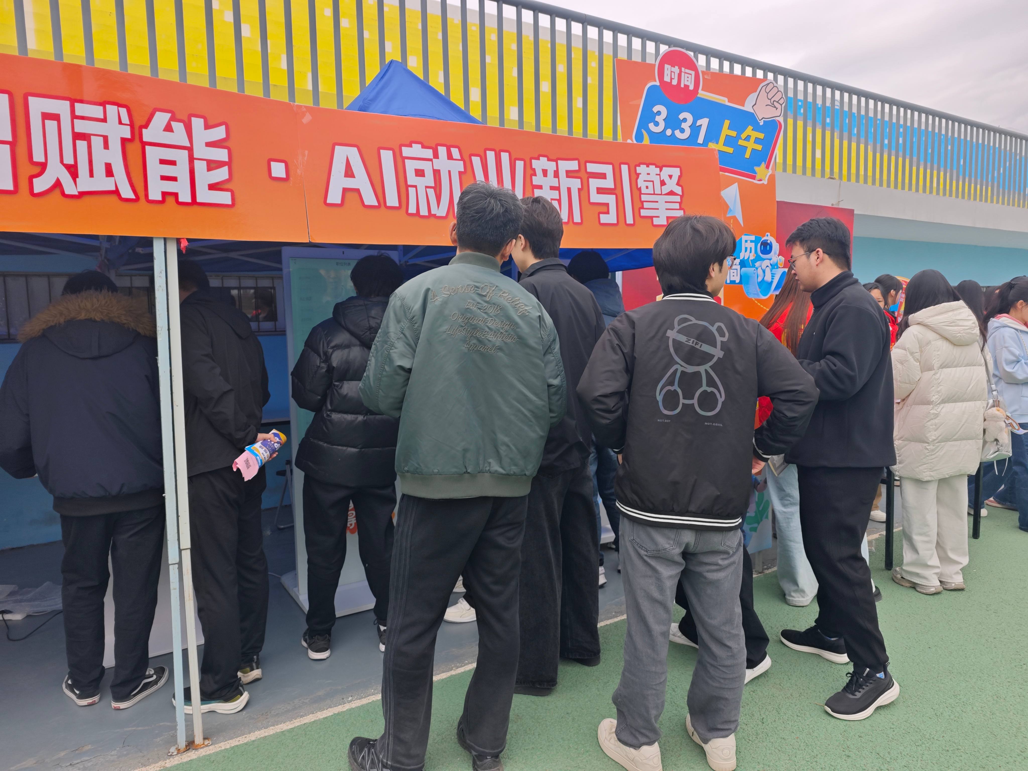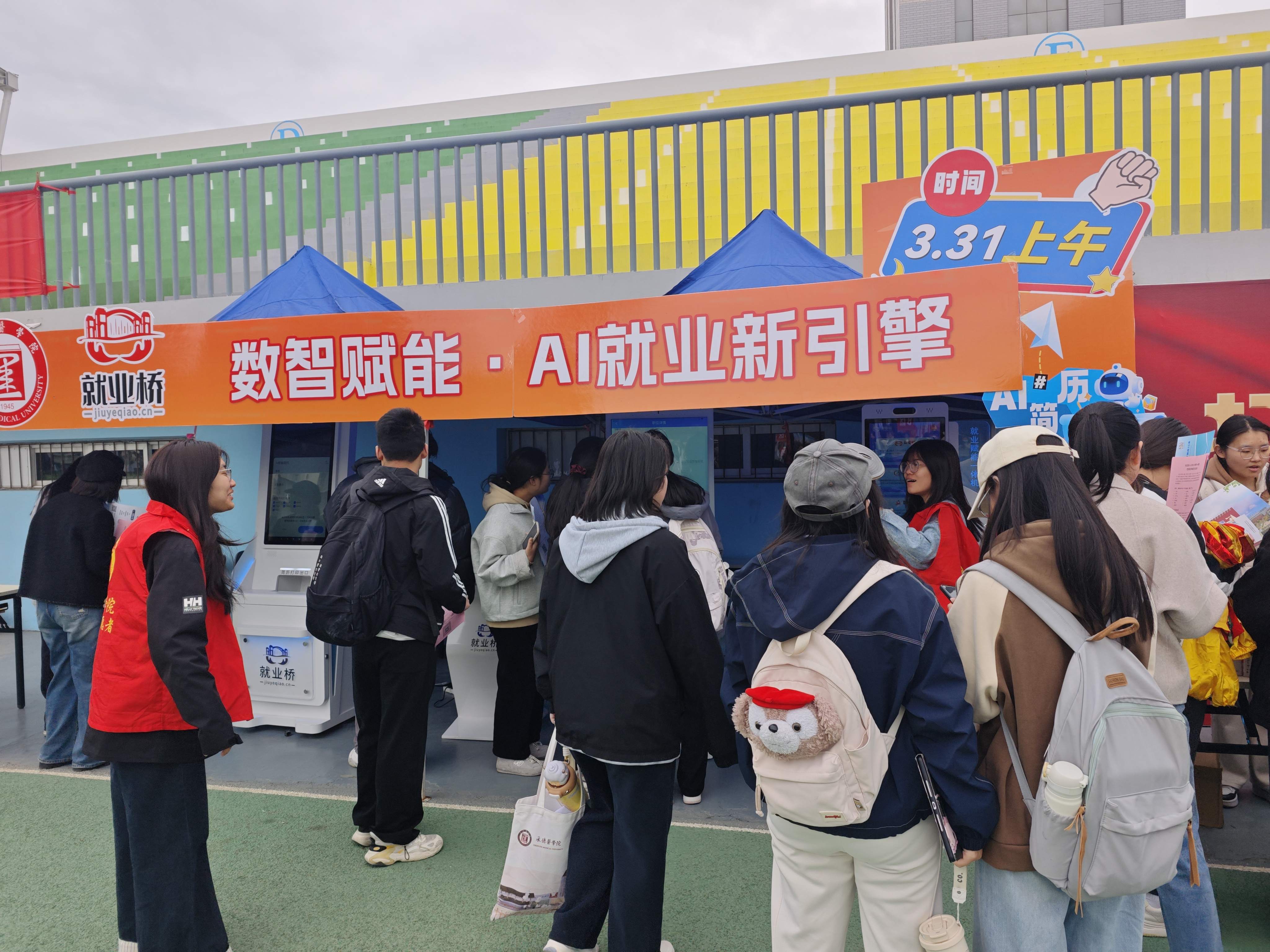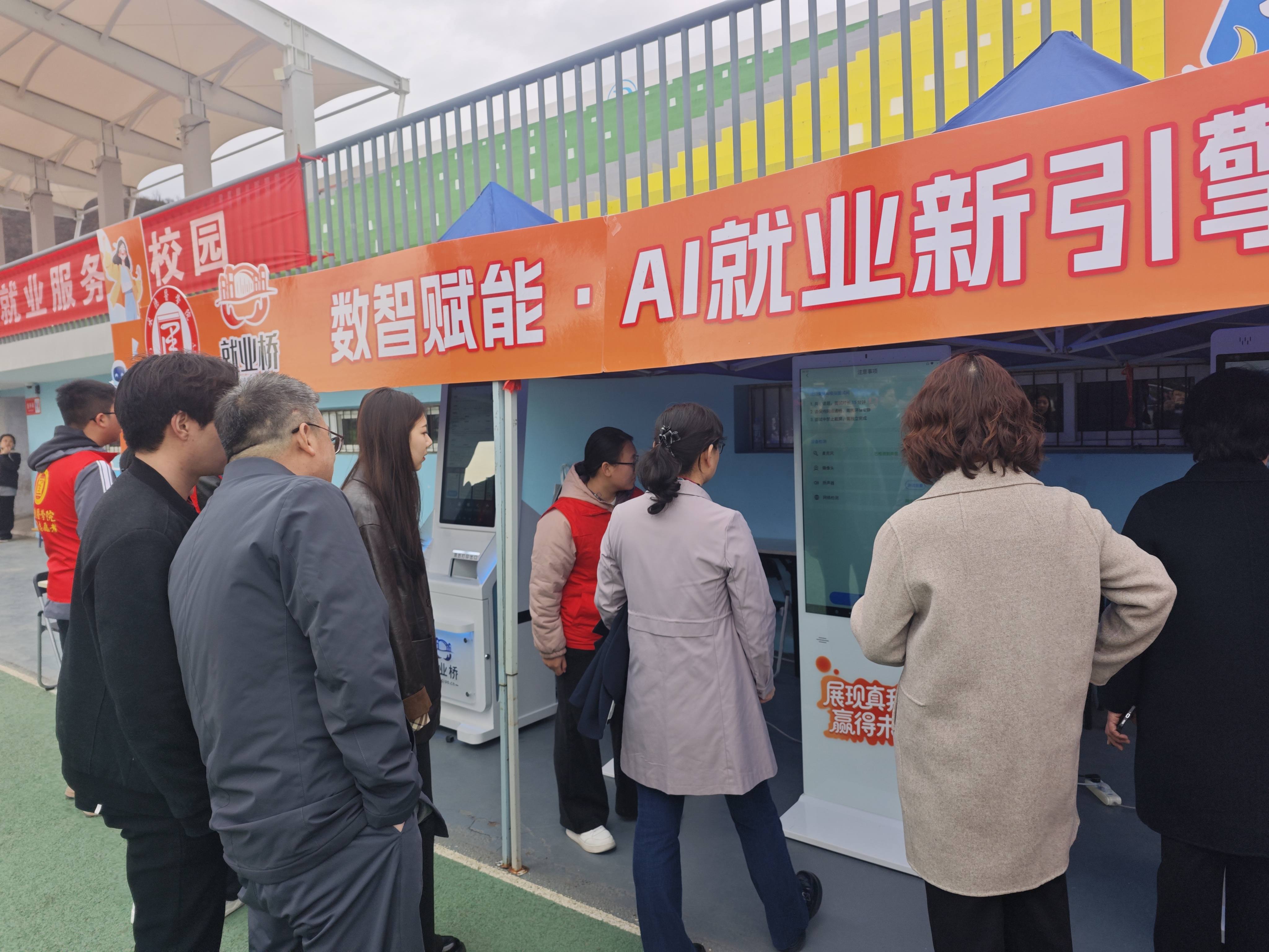 招聘会现场特设“数智赋能区”,简历打印一体机、落地面试一体机、就业赋能一体机,生涯探索一体机,就业服务一体机五台智能设备协同运行,覆盖职业方向探索、简历智能优化、模拟面试实战及就业综合服务等求职关键环节。该区域通过一站式的智能化服务,帮助毕业生在真实求职场景中获得即时反馈与实战演练,有效补齐能力短板、增强求职信心,让技术真正服务于人的成长与就业选择。