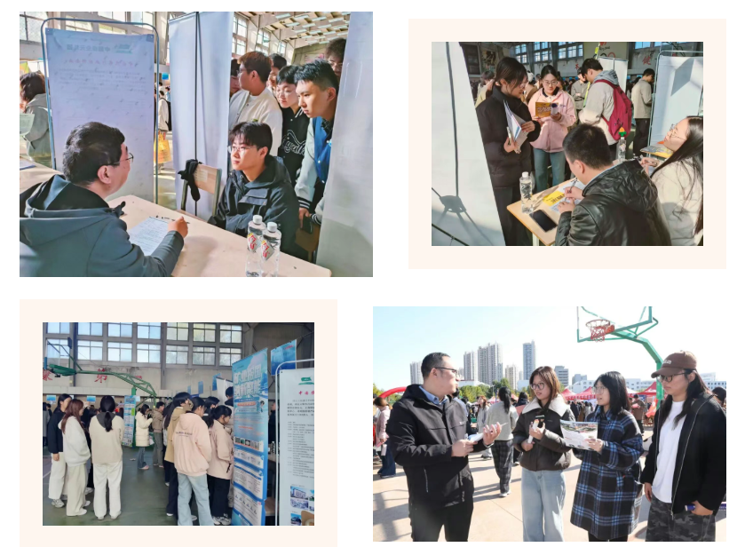招聘会现场,用人单位领导热情地向河北科技师范学院毕业生介绍单位的发展前景、岗位需求以及福利待遇等情况,并耐心解答同学们的疑虑和问题。同时毕业生也提前做好了应聘准备,手持精心制作的简历,积极与用人单位进行沟通和交流,展现出积极主动的求职态度和专业素养。