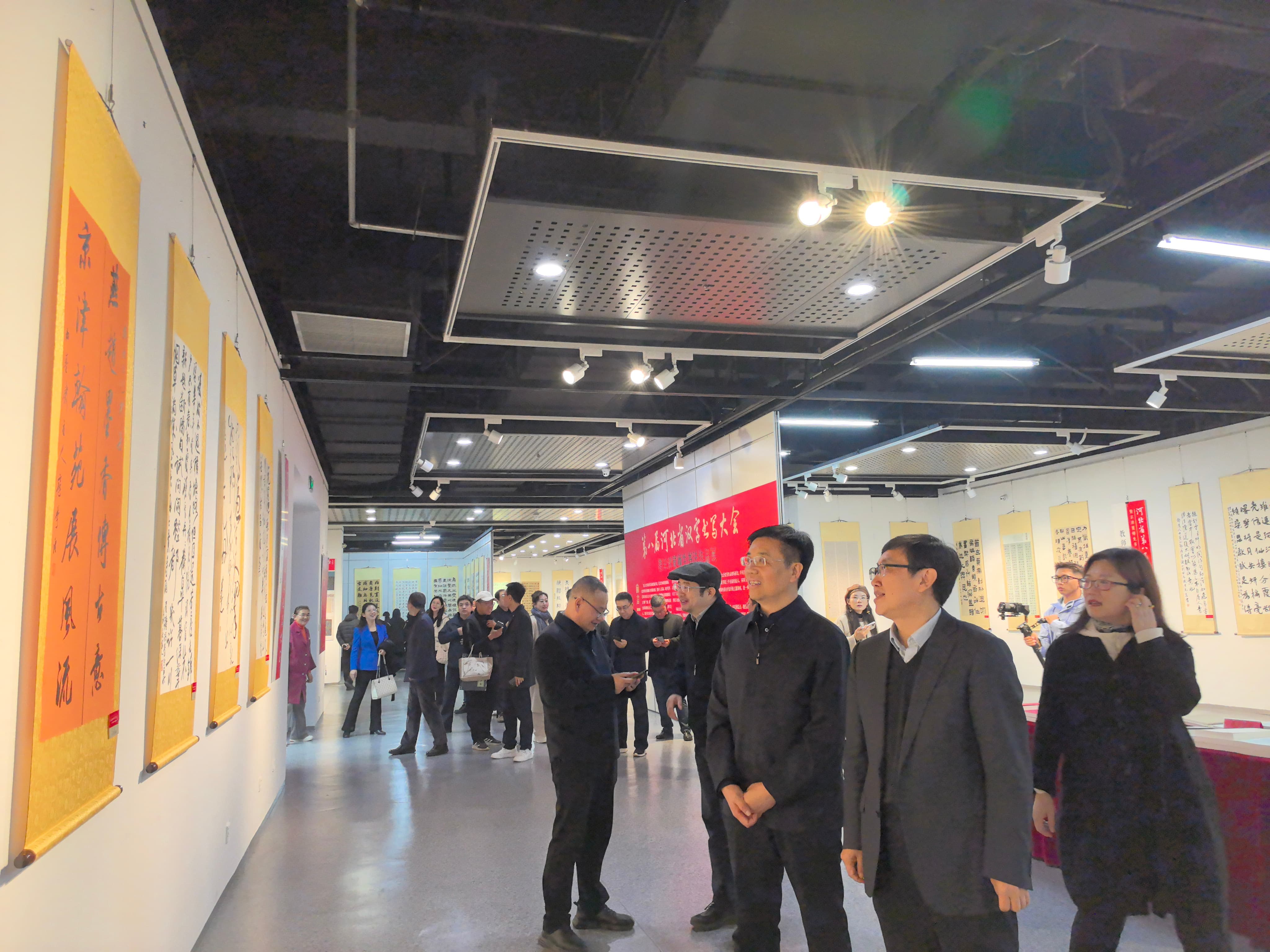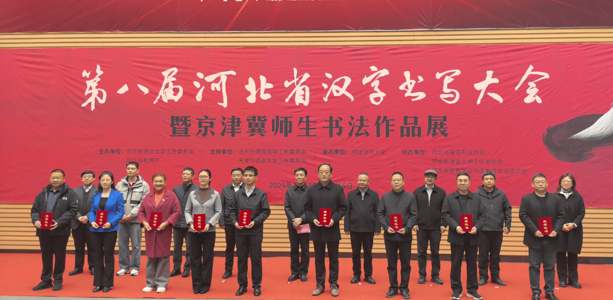 2025年10月30日上午,由河北省语言文字工作委员会、河北省教育厅主办,北京市语委、天津市语委支持,河北师范大学承办的“第八届河北省汉字书写大会暨京津冀师生书法作品展”在河北师范大学博物馆隆重开幕。来自京津冀三地的语委领导、高校代表、书法名家、获奖师生及社会各界人士齐聚一堂,共同见证这场以汉字为媒、以笔墨传情的文化盛会。