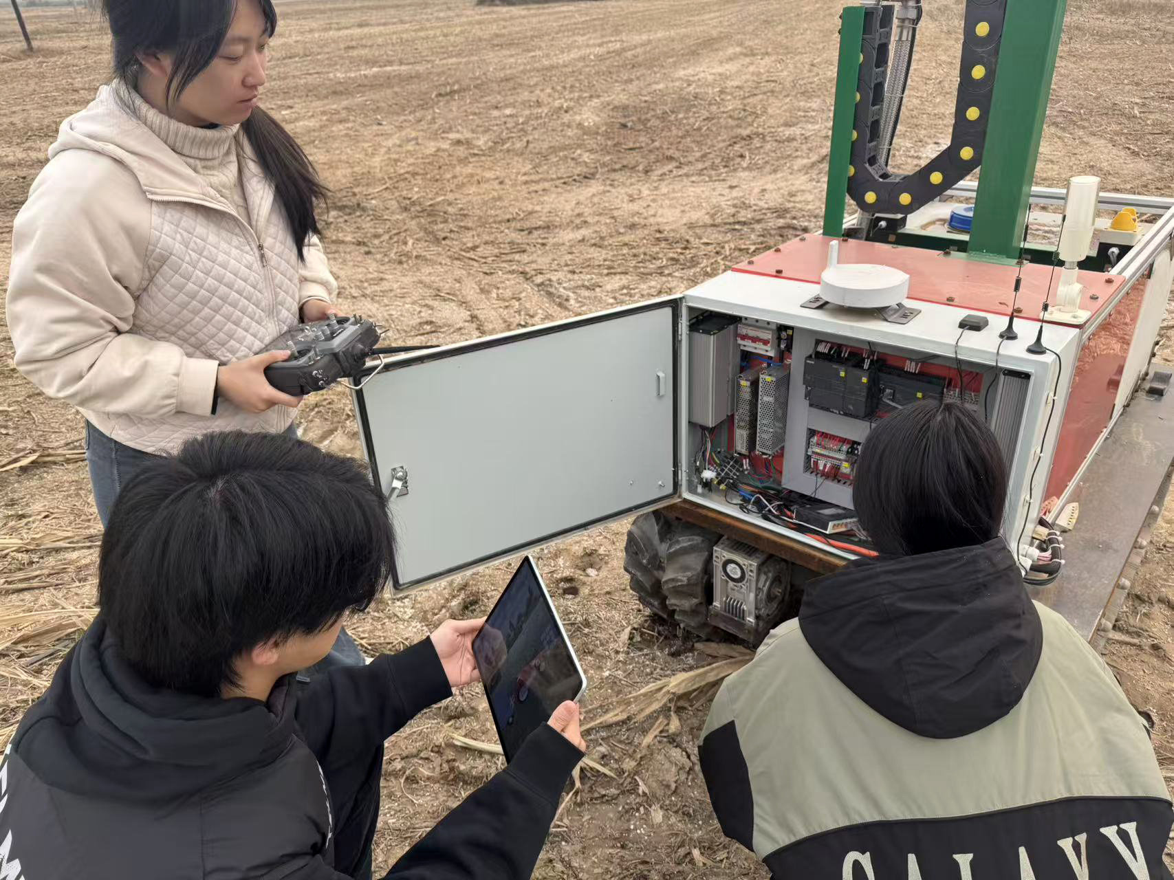 该项目所设计的灌溉机器人以河北邱县智慧农业项目为背景,由我院自主研发,历经了三年的项目沉淀。备赛初期,在王丽佳、魏玮、陆晓艺等团队指导老师的带领下,农田开展调研,收集关键数据,为AI算法优化奠定坚实基础;技术研发阶段,团队反复试验,攻克结构设计、智能控制程序编写等多个难题;冲刺阶段,团队不断完善答辩材料,优化演示逻辑,精准呈现项目技术亮点与应用价值。从省级择优推报,到国赛终审答辩的激烈角逐,团队以扎实的技术功底、清晰的逻辑呈现和良好的现场表现,赢得了评委的高度认可。