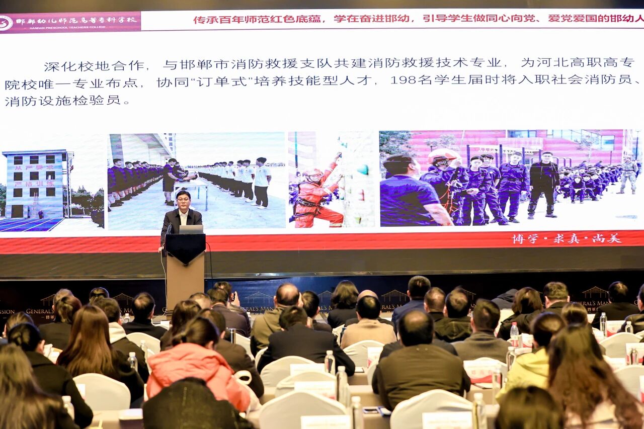 邯郸幼儿师范高等专科学校与会人员与高校毕业生就业协会会长王路江、高校毕业生就业协会学前教育与托育服务工作委员会秘书长杨洁等合影留念。