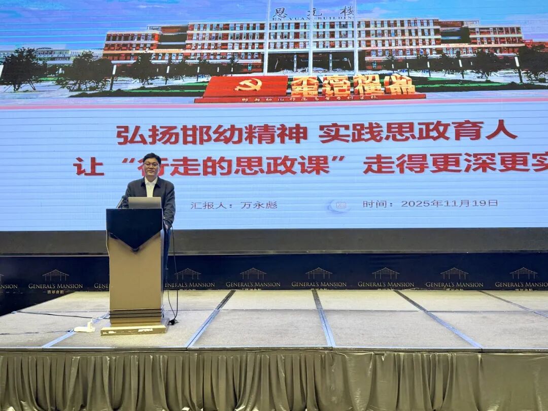 在思政研学创新发展交流会上,万永彪以《弘扬邯幼精神 实践思政育人 让“行走的思政课”走得更深更实》为题作交流发言。他围绕学校整合地方红色资源、深挖中华优秀传统文化底蕴,以优质资源赋能思政研学提质增效的具体实践案例进行了分享;重点围绕学校弘扬“以作为学、乐教爱生”的邯幼精神,以“六在邯幼”(即:学在奋进邯幼、读在书香邯幼、住在温馨邯幼、乐在悦动邯幼、食在健康邯幼、爱在暖心邯幼)为育人载体,引导广大学子努力成为“五爱”(爱党、爱国、爱校、爱家、爱自己)学子的育人实践进行了阐述与交流。