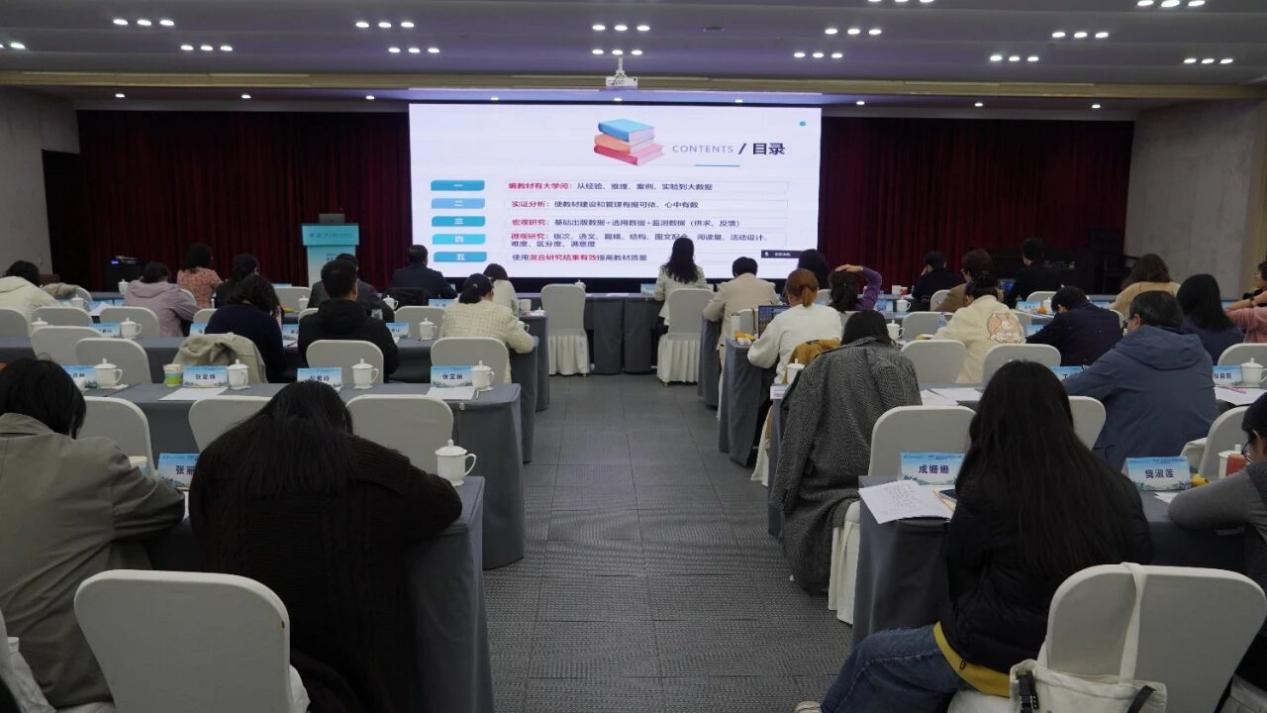教育部课程教材研究所党委委员、副所长曾天山以《运用混合研究方法有效提升教材质量》为题,主要从混合研究方法概述、教材编撰的要求、实证分析、宏观研究、微观研究、使用混合研究方法有效提高教材质量等六个方面作了专题报告,强调通过混合研究方法推动教材优化,提升教材的编审、内容、结构、呈现和印制质量的重要性。