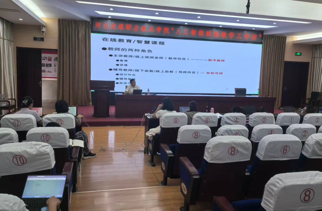 为深入贯彻落实党的二十届三中全会及全国教育大会精神,扎实推进《教育强国建设规划纲要(2024-2035年)》关于人工智能与教育深度融合的战略部署,河北交通职业技术学院于2025年9月27日在主校区实训楼D座一楼报告厅成功举办“人工智能赋能教学工作坊”专题培训。学院各专业(群)带头人、骨干教师,部分系部、分院主任、副主任及教务处全体人员参加培训。