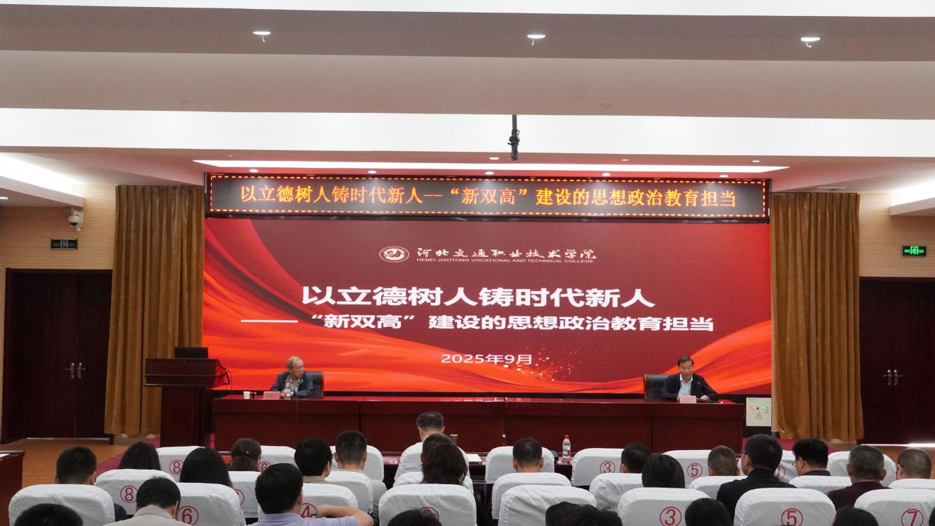 为深入贯彻落实习近平总书记关于思想政治教育工作的重要论述,进一步提升学院思想政治教育工作水平,9月25日上午,“时代楷模”“最美奋斗者”“全国道德模范”“全国高校辅导员年度人物”等荣誉称号获得者,大连海事大学马克思主义学院博士生导师曲建武教授应邀在河北交通职业技术学院主校区D座报告厅作了《以教育家精神铸魂育人》专题讲座。学院党委书记杨立华、党委副书记柳连中出席讲座。学院全体中层干部、各党支部书记、全体思想政治理论课教师、专兼职辅导员和相关处室全体成员现场聆听讲座。讲座由柳连中主持。
