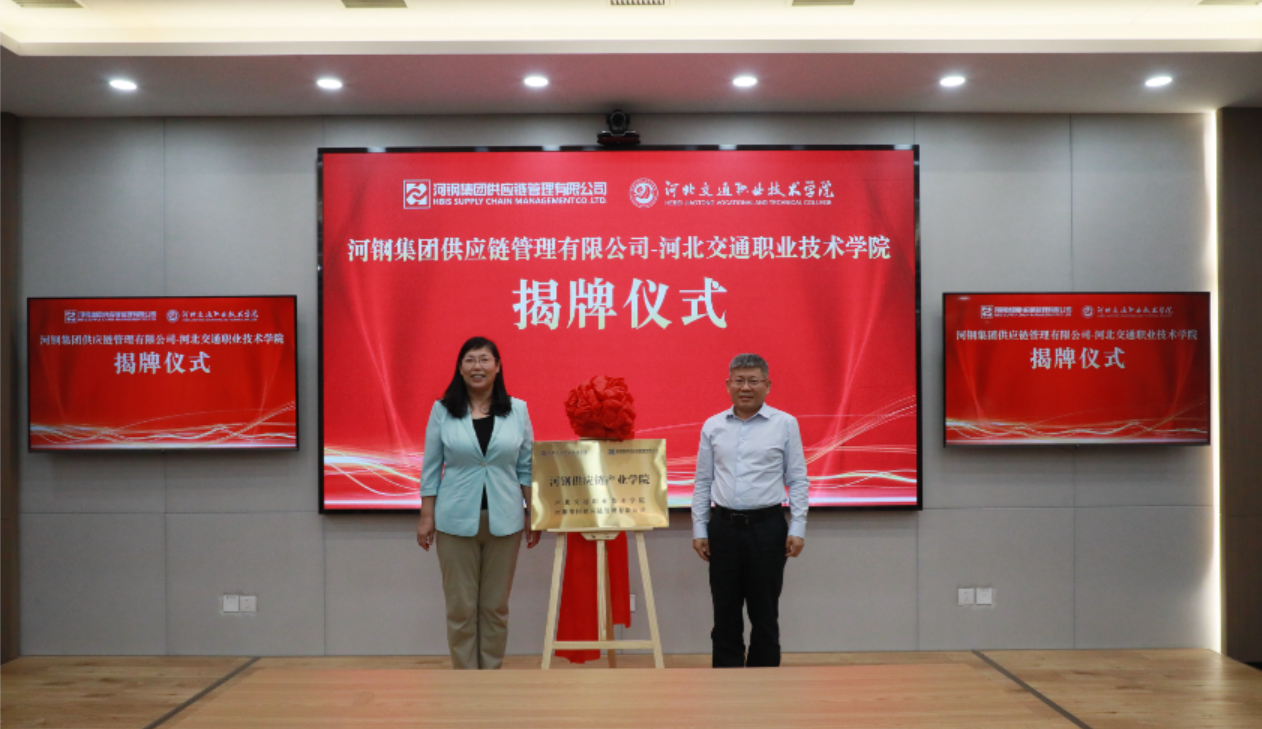 学院党委副书记、院长马良军与河钢供应链党委书记、董事长胡志刚共同为河钢供应链产业学院揭牌。
