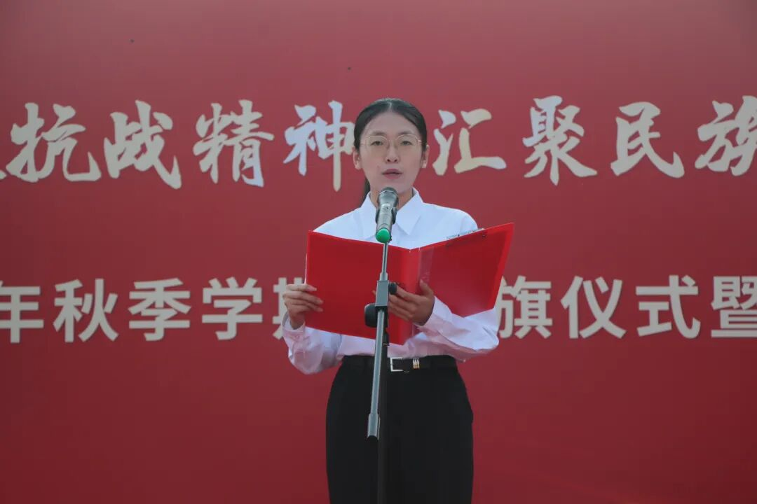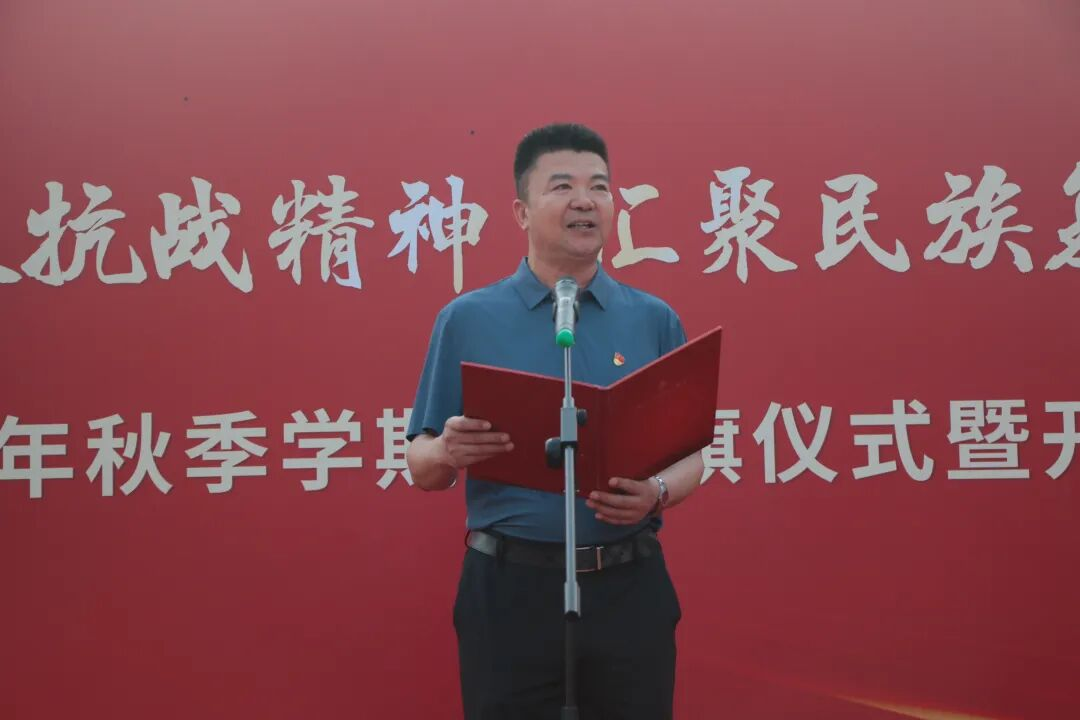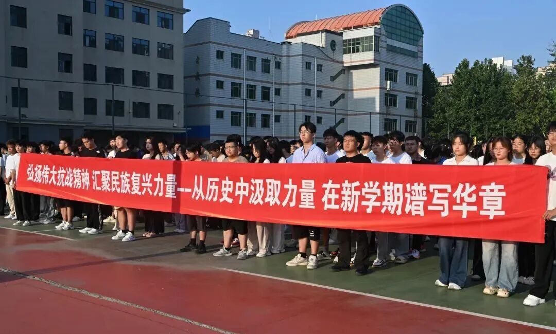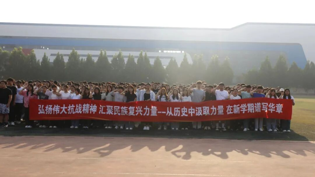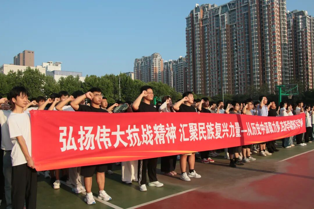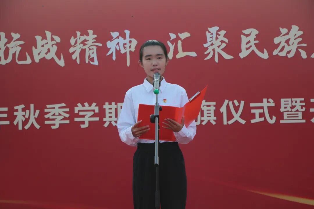 “铭记伟大胜利,汲取奋进力量。赓续抗战精神,谱写青春华章……”全体学生高举右拳,于国旗之下,庄严宣誓。誓言铮铮,声音洪亮,抒发了对祖国的忠诚与热爱,以及为实现中华民族伟大复兴而努力奋斗的坚定决心。