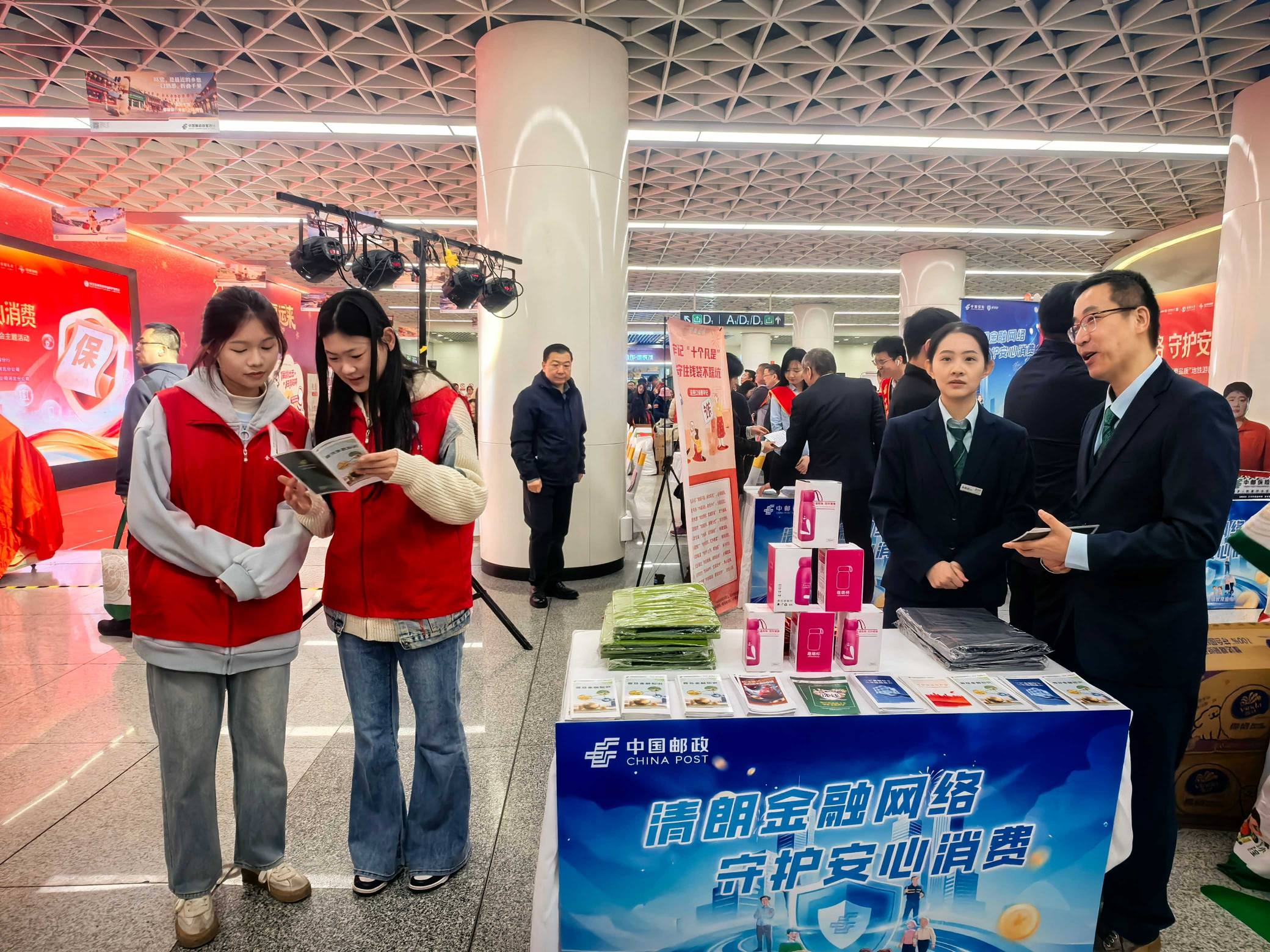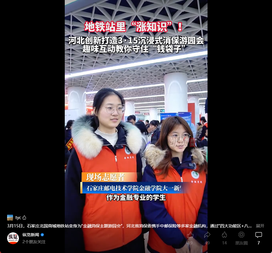 3月15日,石家庄北国商城地铁站地下广场人流如织,一场别开生面的“消保游园会”正在火热进行。身着红色马甲的金融学院师生与邮政企业骨干穿梭在人群中,有的手持“消保魔方”讲解防非技巧,有的引导市民扫码参与“快问快答”。“原来存款保险还有这么细的规定,今天可算问清楚了!”一位刚咨询完业务的市民连连称赞。这场由金融学院与多家邮政企业联合开展的“清朗金融网络 守护安心消费”2026年金融消费者权益保护活动,将党建联学共建延伸到金融消费者权益保护宣传一线,将金融服务与管理专业国家级教师创新团队建设融入服务民生的火热实践,让党建引领下的校企协同育人模式真正“破壁出圈”。