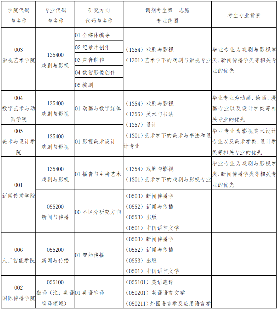 3.第一志愿报考专业与调入专业相同或相近,调剂考生第一志愿报考专业范围见上表。