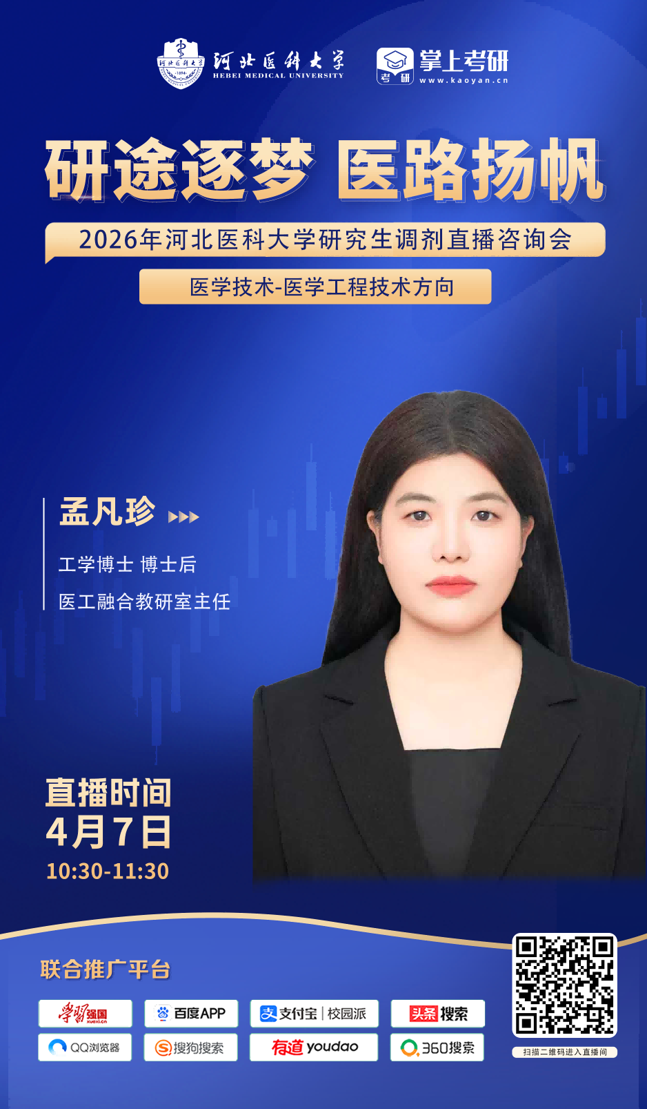 研途漫漫,终有回甘!4月7日,河北医科大学与你直播间不见不散,助力你顺利上岸,开启医学深造新征程!