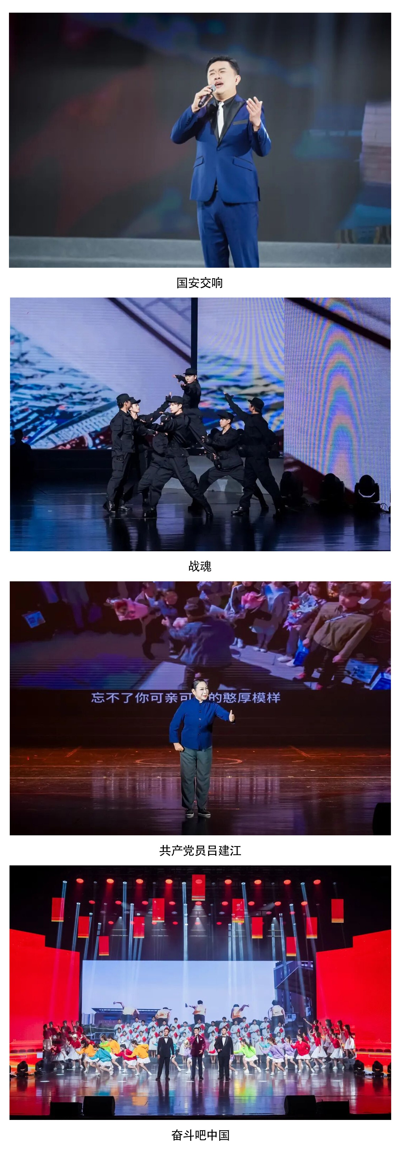 第三篇章,歌曲《国安交响》以恢弘旋律汇聚成时代的壮丽凯歌;舞蹈《战魂》以刚劲有力的肢体语言展现国安战士的铁血担当;评剧《共产党员吕建江》以传统戏曲形式讲述“时代楷模”的平凡坚守;最后,晚会在歌舞《奋斗吧中国》的激昂旋律中圆满落幕,全体演职人员与台下观众共同唱响“以奋斗之名,向着新征程,出发”的时代号角。