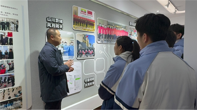 随后,在学长学姐的“专属向导”带领下,学子们依次走进牡丹江医科大学校史馆、抗疫事迹展览馆、生命奥秘科学馆:在校史馆,大家循着学校“立德立行,唯实唯新”的校训精神,回顾牡丹江医科大学在医学人才培养、临床医疗服务、地方健康保障中的使命担当,深刻理解“医教协同”的办学底蕴;在抗疫事迹展览馆,一幅幅医护人员逆行出征的纪实图片、一件件标注着“抗疫记忆”的防护服与诊疗器具,让学子们沉浸式感受“敬佑生命、救死扶伤、甘于奉献、大爱无疆”的医者精神,更坚定了“学医报国”的理想萌芽;在生命奥秘科学馆,学院党委书记徐永良亲自担任讲解员,结合形态学展品与趣味科普,将抽象的生命科学知识转化为生动案例,帮助学子们深化对“生命”与“健康”的认知,进一步体会医学“探索未知、守护生命”的核心价值;在心理健康教育中心和“一站式”学生事务大厅,学子们对校园服务的认知更加清晰,也深刻体会到大学为学生成长提供的全链条支持。