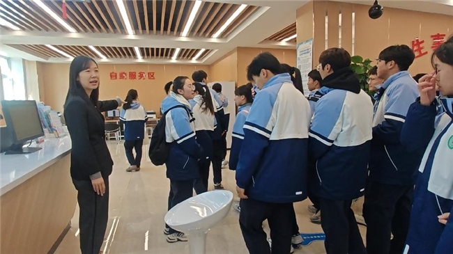 参观环节结束后,活动转入“实践体验+生涯指导”双轨环节:在心理健康教育中心门前,志愿者以“理论讲解+实操演示”的形式,详细传授海姆立克急救法、心肺复苏操作流程,学子们分组上前模拟练习,在亲手实践中掌握应急救护技能,强化“健康守护者”的责任意识。