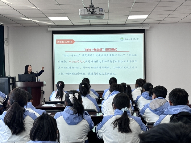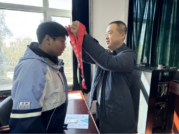 最后,学子们走进学校招生就业处,副处长刘宾娜围绕“新高考政策解读”“我校专业设置与分组情况”“近年录取分数分析”三大核心内容展开系统讲解。帮助学子们全面把握我校办学特色与招生政策,全方位解答学子们关于“如何报考医学专业”的困惑,帮助大家在生涯规划中“拨开迷雾、找准坐标”。随后,学院党委副书记宋海南为每位学子颁发医学影像学院专属勋章,将“白衣梦想”的种子以仪式感的方式根植于心。