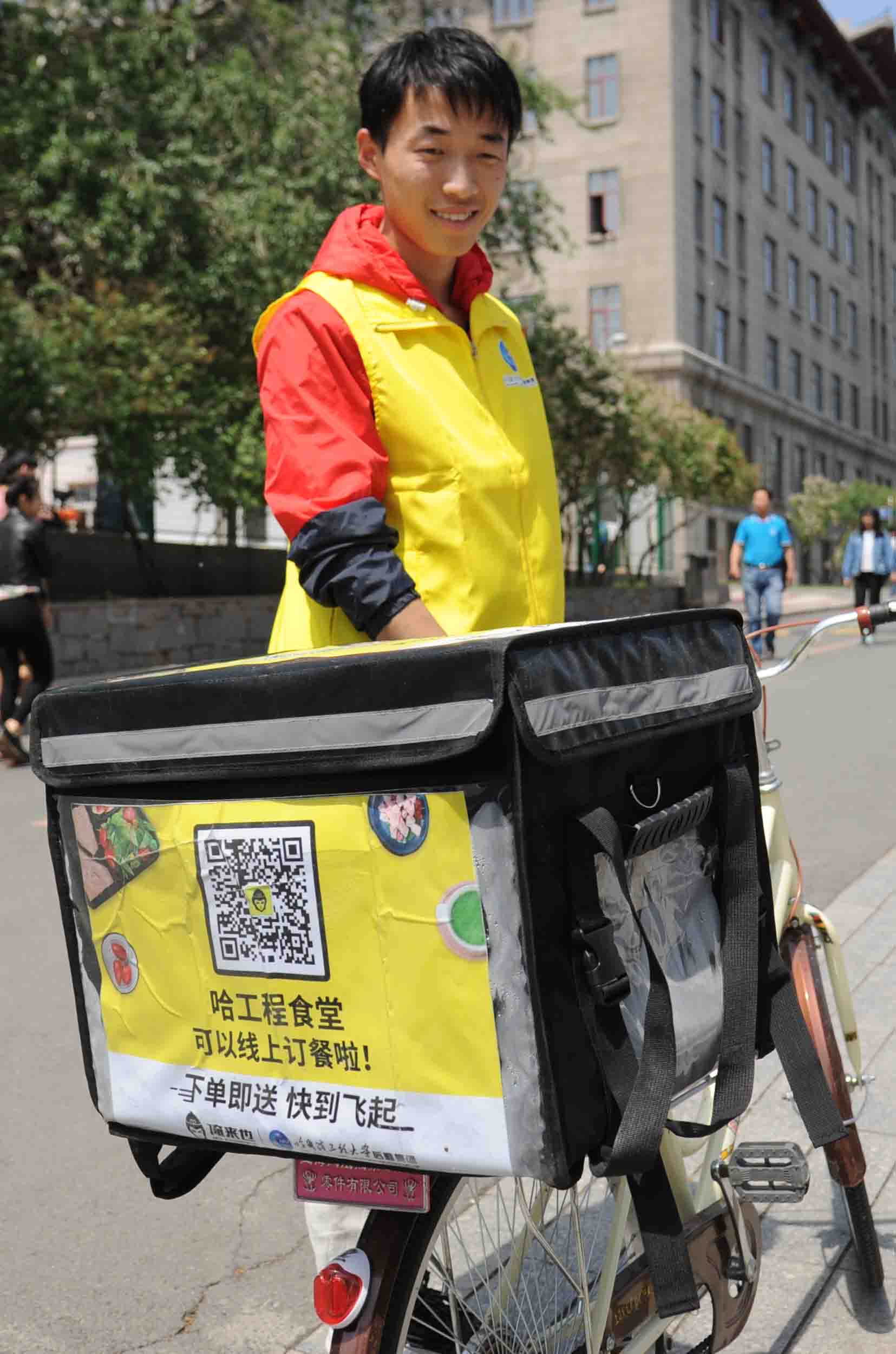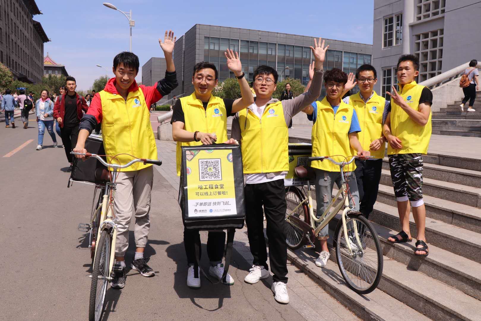 为保证校园餐饮安全、满足师生订餐需求,哈工程后勤集团饮食中心携手“俺来也”公司推出了线上订餐服务,全力打造哈工程网上食堂,学生们足不出户,就可以吃到食堂饭菜,真正做到好吃不贵,安全美味。目前有10辆送餐车,30名送餐员,每天送出外卖约为100余份。所有送餐员均招募于校内兼职学生,在为师生提供服务的同时也为学生提供了实践的环境。为了维护校园公共秩序,保障师生员工安全,送餐员均采用自行车作为送餐工具,统一培训、统一着装。送餐快捷,服务到位。