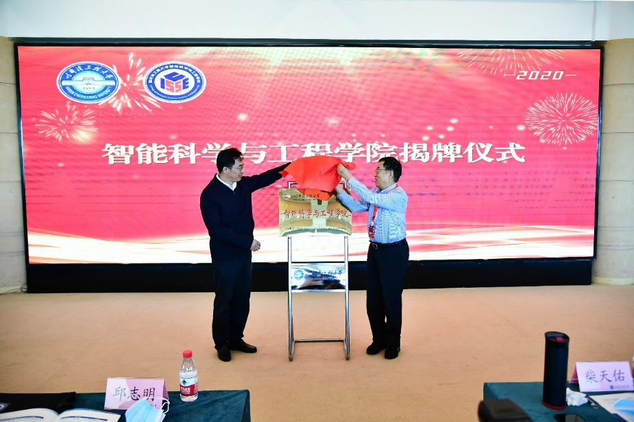柴天佑和高岩共同为智能科学与工程学院成立揭牌。