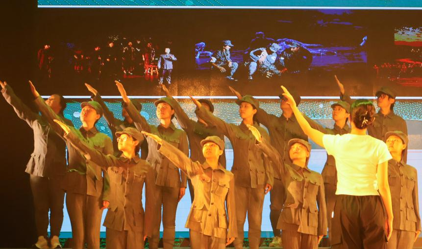 《郑律成》以“信念深扎民族根,旋律融铸中国魂”为主线,以亲情、友情、爱情为副线,生动塑造了人民音乐家郑律成在战火中成长为革命艺术家的鲜活形象,与抗战胜利80周年的时代背景形成深刻呼应。现场师生沉浸其中,当《延安颂》《八路军进行曲》等经典旋律响起时,不少师生自发跟唱,演出结束后掌声与欢呼声持续良久,红色情感在艺术共鸣中深度传递。