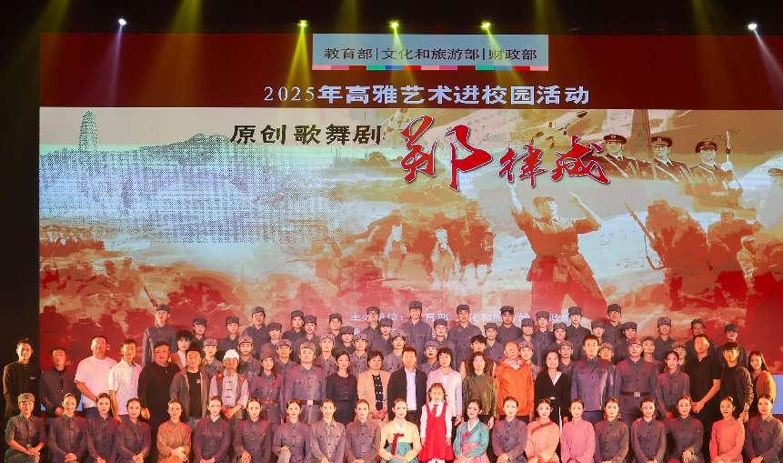 歌舞剧《郑律成》的成功演出,不仅为学校建校84周年增添了红色文化注脚,更将“高雅艺术+红色基因”的元素融入校园文化体系,通过师生自发跟唱经典旋律、演出后热议抗联精神等场景,让红色文化从“舞台呈现”走向“日常共鸣”。两校以《郑律成》为纽带,共同丰富了校园文化的内涵,让红色主旋律成为校园文化建设的核心底色。