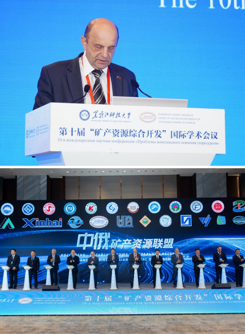 9月24日至27日,第十届“矿产资源综合开发”国际学术会议在哈尔滨成功举办。本次会议由黑龙江科技大学与俄罗斯科学院远东分院哈巴罗夫斯克研究中心联合主办,中国科学院院士王成善、俄罗斯科学院院士拉斯卡佐夫·伊戈尔、俄罗斯自然科学院院士巴图金·安德烈安、俄罗斯交通科学院院士库德里亚夫采夫・谢尔盖、俄罗斯科学院通讯院士舒柳滨·亚历山大等来自中国、俄罗斯、白俄罗斯等多个国家的院士、专家学者及企业代表,围绕“绿色创新与可持续开发——矿产资源的未来之路”展开深度对话与交流。