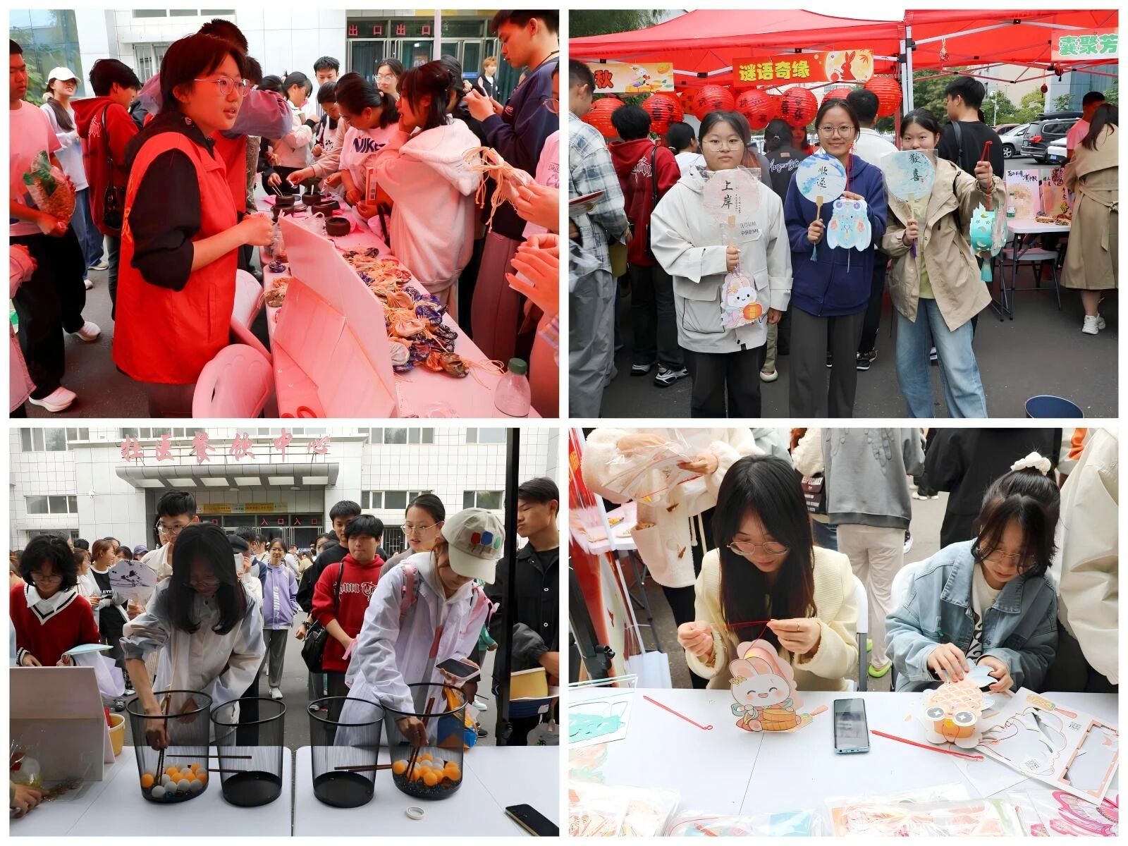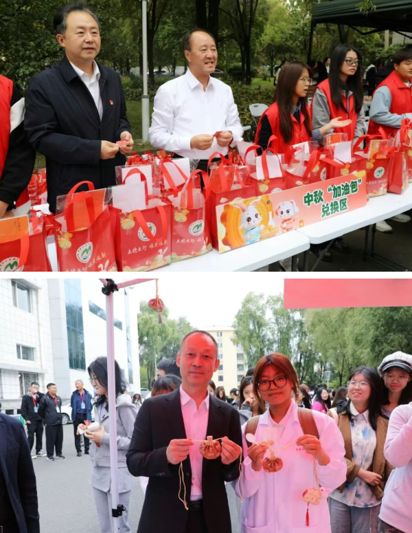 9月28日中午11时,学校在食堂门前开展“庆国庆 迎中秋”传统文化趣味体验活动。现场精心设置了多个传统文化体验区,“碧海寻珠”——夹球游戏区充满竞技乐趣吸引了众多同学驻足参与,“饼韵中秋”——月饼试吃体验区让大家感受舌尖上的传统韵味,“扇绘流年”——漂漆扇DIY区更是为同学们提供了发挥创意的平台,“月满华灯”——节日花灯制作区;“囊聚芳华”——香囊体验区,“秒剪生花”——剪纸手工区,“谜语奇缘”——竞猜灯谜活动区等活动,内容丰富多彩,形式新颖有趣。活动现场还为各民族学生分发了精心准备的中秋“加油包”,内含石榴、苹果和月饼等食物以及可爱的兔子灯笼,寓意着团圆、平安、吉祥、喜庆。学校党委书记马宏坤,校长、党委副书记李春江等校领导也纷纷参与到活动中来,体验手工香囊制作并亲自为同学们分发“加油包”,整个现场既热闹又温暖,节日的喜庆与学校的关怀在每一个细节里悄然流淌。