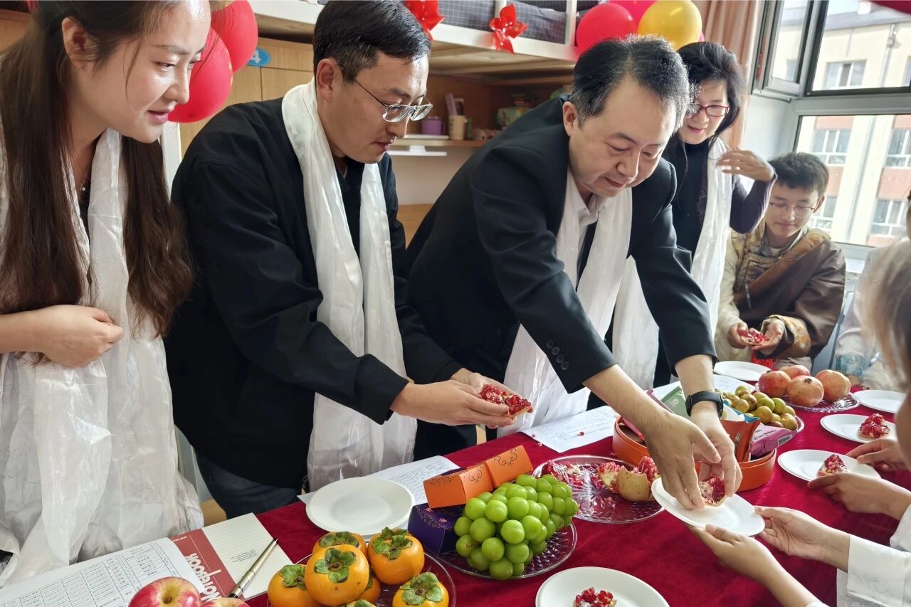 校领导与各民族学生共迎双节