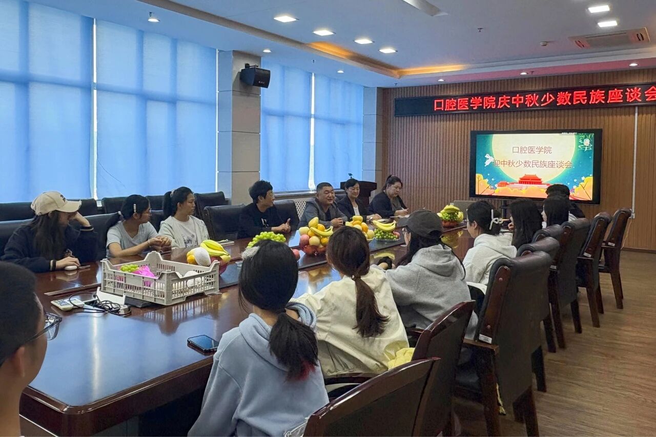 口腔医学院在学院会议室组织召开“情暖中秋话团圆 同心筑梦向未来”各民族学生座谈会。学院党政领导班子成员、辅导员及藏族、回族、朝鲜族等20余名学生代表参加座谈。会议期间,学院精心准备了节日慰问品,与会师生在轻松融洽的氛围中进行了深入交流。