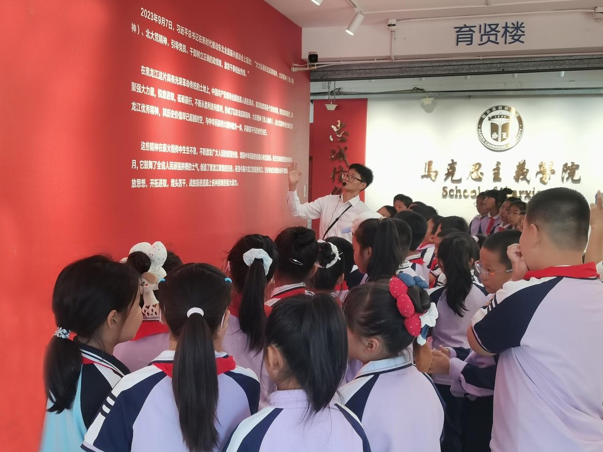9月26日,马克思主义学院与大中小学思政课一体化研究中心邀请哈尔滨剑桥学院附属小学三年级学生走进龙江优秀精神文化长廊。在学院青年教师的讲解下,泛黄的老照片、凝练的文字介绍将龙江红色历史徐徐铺展。面对孩子们现场真挚的提问,教师以“英雄心中装着祖国和人民”的通俗解读,帮助少年读懂信仰的重量。同日,“静雯”志愿者服务站组织志愿者赴烈士陵园开展缅怀活动,志愿者们在纪念碑前鞠躬致敬,在烈士事迹陈列馆中聆听革命故事,于庄严肃穆中接受精神洗礼,让“不怕牺牲、艰苦奋斗”的革命精神深深扎根。