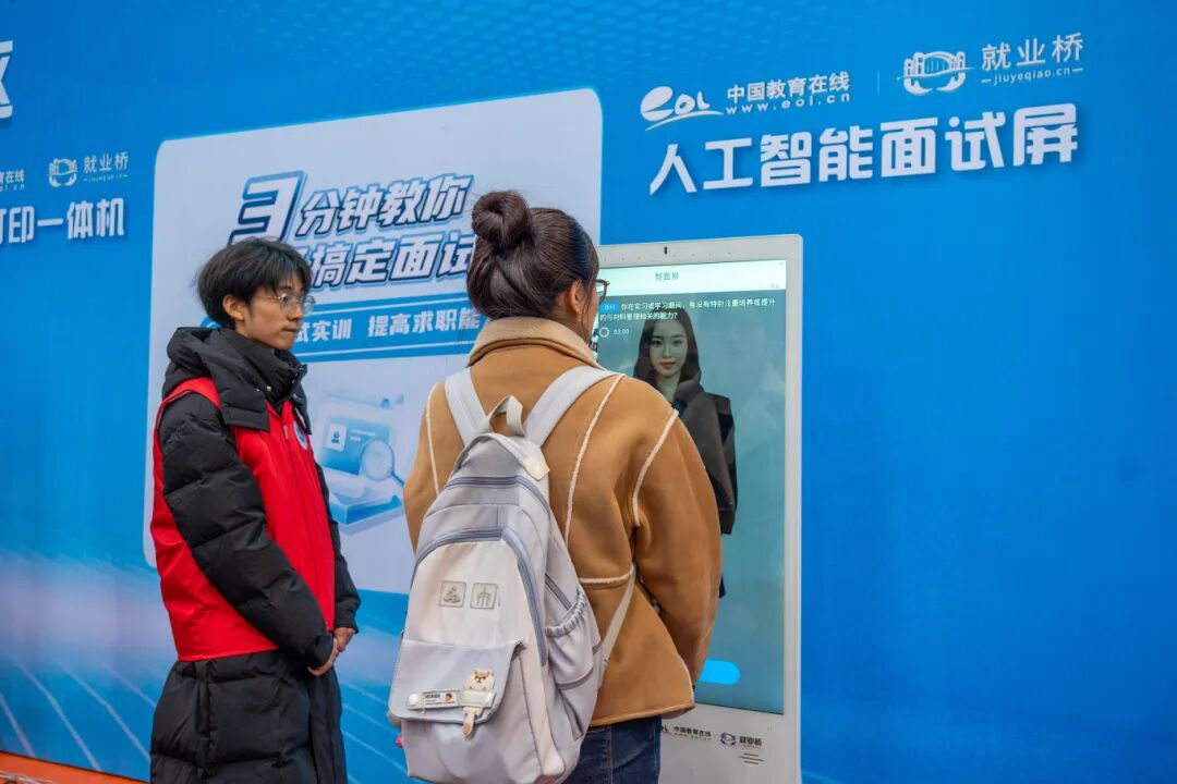 为切实提升毕业生职业竞争力,本次双选会创新性地设置“AI赋能职业能力提升专区”,为毕业生打造全方位求职助力平台。毕业生可借助人工智能技术体验模拟面试,提前熟悉面试流程、掌握面试技巧;通过生涯探索工具梳理职业兴趣与发展方向;还能便捷完成简历打印,并实时查询最新就业政策、行业动态等资讯,有效弥补求职短板,提高求职成功率。此外,现场还设置有“直播带岗”“面试指导”“石榴籽就业服务站”“大学生应征入伍宣传站”等10个实体咨询点,为毕业生提供精准化、个性化的求职服务,从简历优化、面试技巧指导到就业政策解读、参军入伍咨询,全方位满足毕业生多样化求职需求。