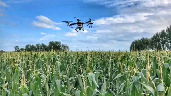 2019年阿城丰收乡玉米黏虫灾害现场,黑龙江农垦职业学院无人机团队提供技术服务。