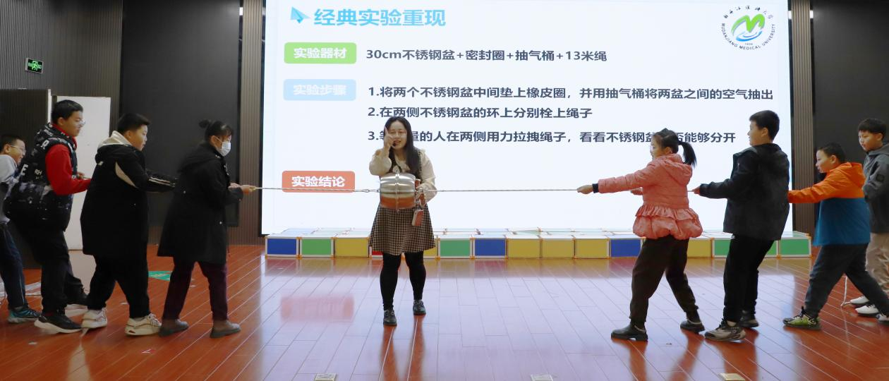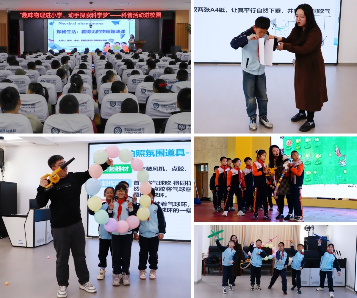 为全面贯彻落实习近平总书记关于科技创新、科学普及和科学素质建设的重要指示精神,推动高校优质科普资源向基础教育延伸,让科学精神与红色基因同频共振。10月18日至29日,牡丹江医科大学医学影像学院物理教研室联合学校团委,以“青春科普传薪火,思政润心育新苗”为主题,走进牡丹江市井冈山小学、先锋小学、师范附属小学及宁安市朝鲜族小学,为千余名学生呈现红色文化与科学普及并行的生动实践课。