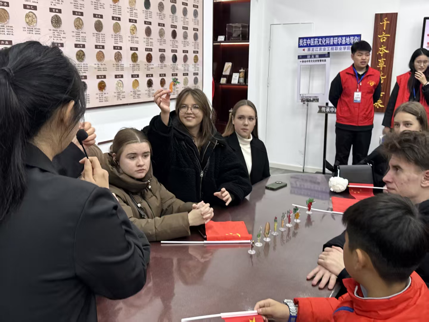 11月1日,受黑龙江省体育旅游融合发展促进会委托,由黑龙江农业工程职业学院生物制药学院行知中医药文化宣讲团承办的“青春携手 共探中药香”中俄青少年中医药文化体验日活动,在黑龙江农业工程职业学院中医药文化科普研学基地举行。活动汇聚了45名俄罗斯高中学生与老师代表,以及10名中国中小学生参加,共同体验中医药文化的独特魅力。