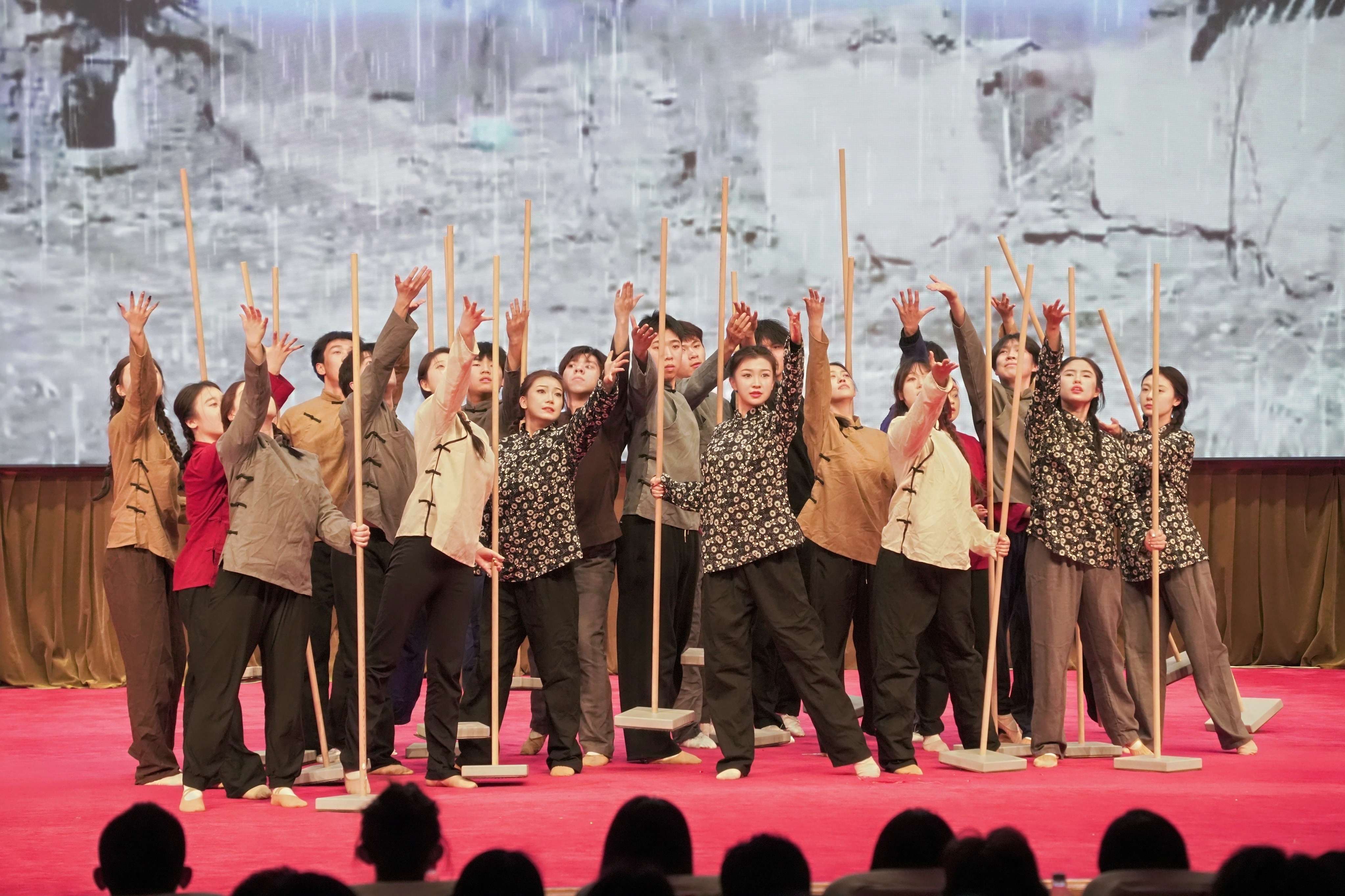 《铁人颂》以共和国石油工人“铁人”王进喜的光辉事迹为原型,通过“破冰取水”“人拉肩扛”“勇跳泥浆池”等经典场景的戏剧化重构,生动诠释了“爱国、创业、求实、奉献”的铁人精神内核。剧中,百余名学生演员以质朴而深情的表演,将铁人“宁肯少活二十年,拼命也要拿下大油田”的豪迈气概和“甘为党和人民当一辈子老黄牛”的奉献情怀展现得淋漓尽致。省委党校(省行政学院)马克思主义学院院长陈晨对本剧给予了肯定,认为其“以真挚的情感和生动的舞台语言,成功塑造了有血有肉的铁人形象”,也提出了宝贵的意见。省委党校学员纷纷表示:“这不仅是艺术享受,更是一次精神的洗礼!”省委党校学员何城志感慨道:“我深受震撼,也倍感使命在肩,这不仅是一次艺术的欣赏,更一次深刻的党性锤炼!” 省委党校学员周佳凝表示:“舞台上,王进喜与工人们在凛冽寒风中破冰取水的场景,让我真切触摸到了铁人精神的伟力。我将把这种敢干实干、艰苦奋斗的精神带到未来的工作中去!”