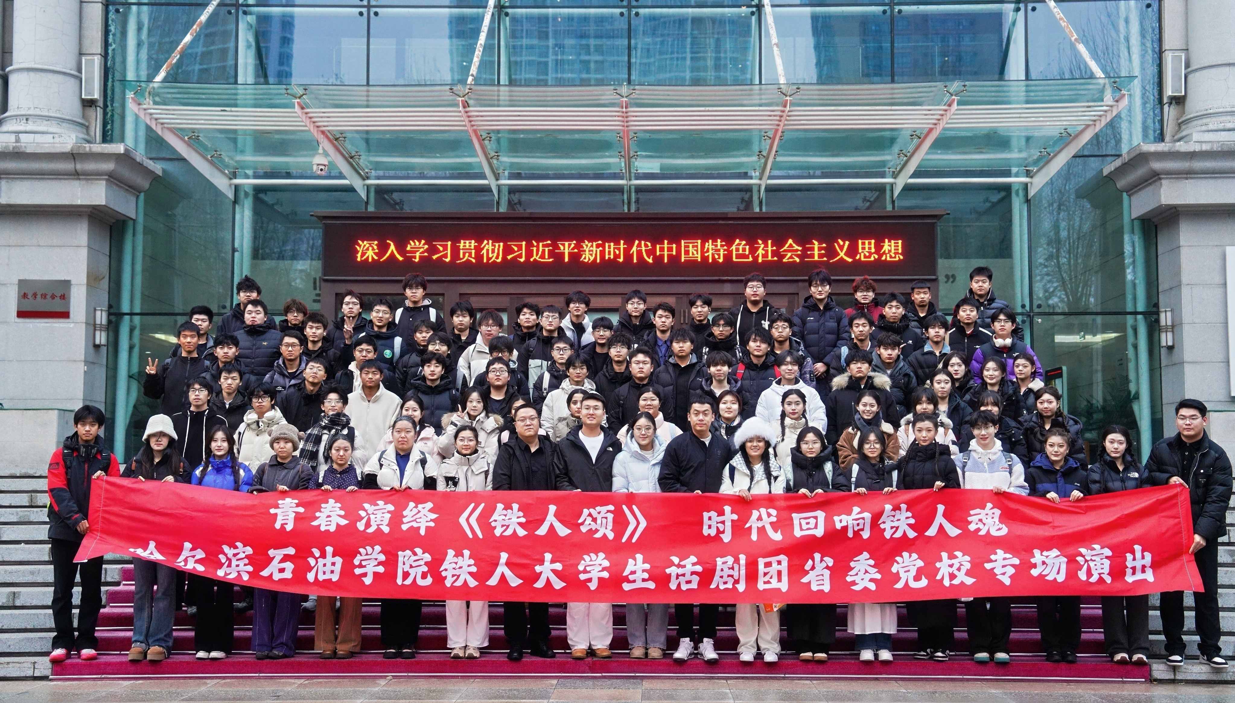 11月8日,哈尔滨石油学院原创情景话剧《铁人颂》受邀走进黑龙江省委党校,作为一堂特殊的“行走的党课”精彩上演。这是该剧自2023年9月首演以来的首次校外公演,以艺术化的形式将铁人精神从校园舞台推向更广阔的社会课堂,成为新时代思政育人与红色文化传承的生动范本。