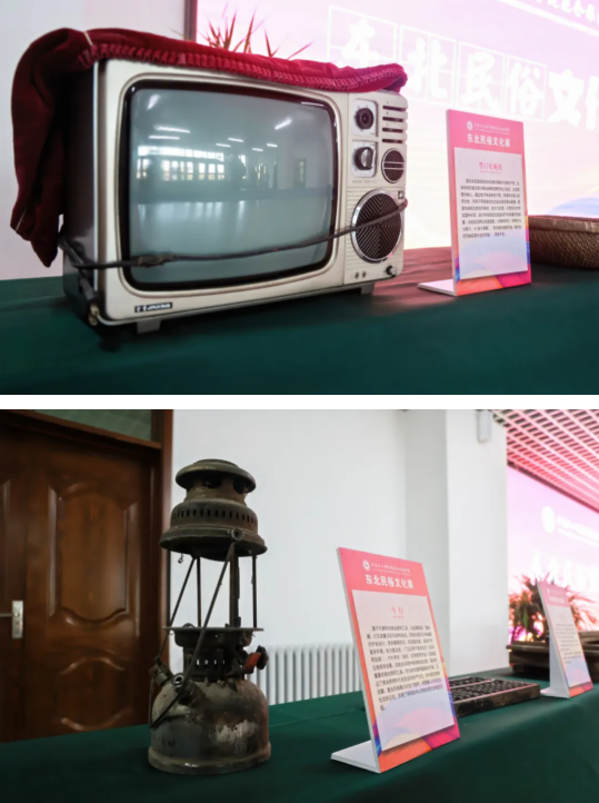 “我之前只在视频里看过‘嘎拉哈’,今天终于亲手玩到了,太有意思了!”一位来自四川的同学兴奋地展示着手中的羊拐骨。在“东北老物件展”区域同样吸引了许多同学驻足。老式的电视机、斑驳的马灯、泛黄的电话机……这些充满岁月痕迹的物件,让书本上的东北民俗变得可知可感。