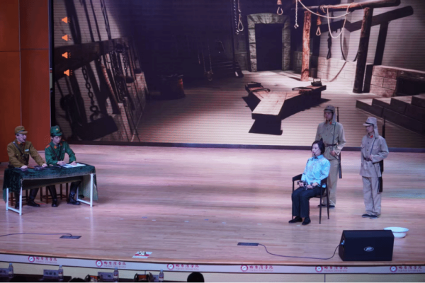 话剧以“当代学生参观东北烈士纪念馆”拉开序幕,展柜中泛黄的书信、锈迹斑斑的遗物,瞬间将观众带入那段风雨如晦的岁月。随着剧情推进,演员们生动再现了赵一曼受党组织派遣奔赴东北,在哈尔滨秘密组织领导电车工人大罢工的热血场景——面对日伪压迫,她振臂高呼、凝聚众力,用坚定的信仰点燃群众抗日斗志,这场罢工最终以胜利告终,极大鼓舞了东北人民的抗争决心。剧中,从街头宣传抗日主张到深山密林开展游击斗争,从面对“金木水火土”五种酷刑坚贞不屈,到写下“母亲是为国而牺牲”的绝笔家书,“红装白马女政委”的刚毅与柔情被刻画得淋漓尽致。